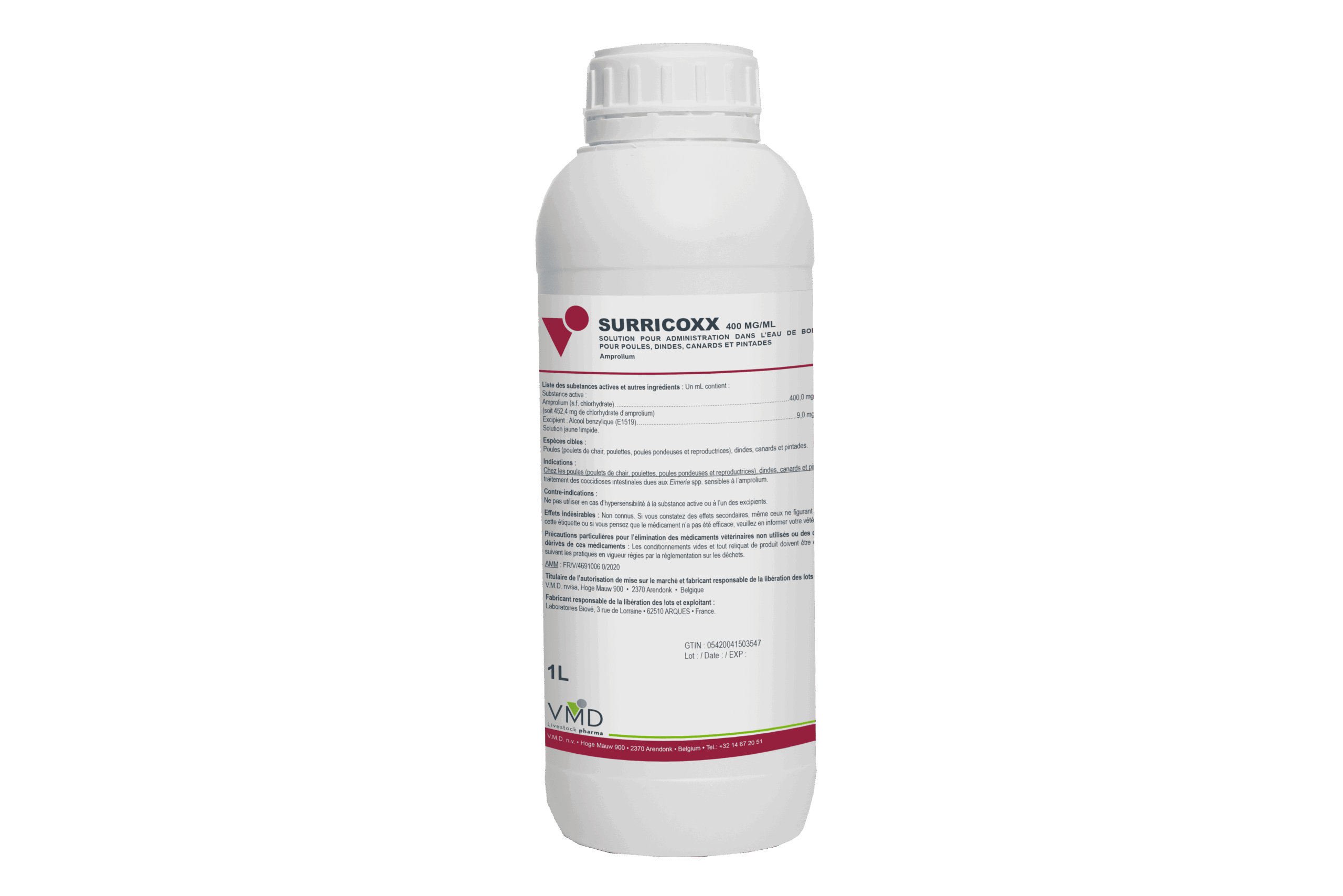 Amprolium 400,0 mg (sous forme de chlorhydrate) (équivalant à 452,4 mg de chlorhydrate d’amprolium)